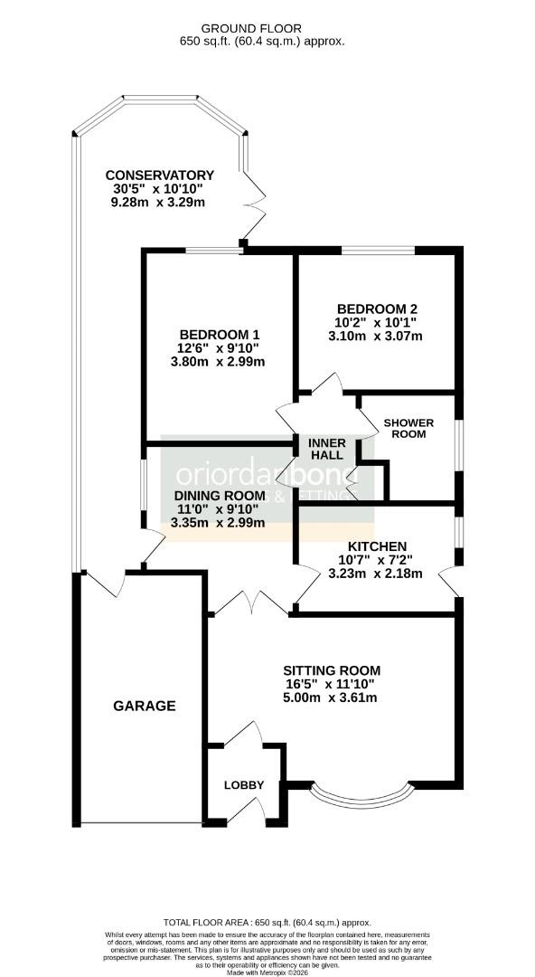 O'Riordan Bond is pleased to offer for sale this rarely available two double bedroom detached bungalow, situated in a popular location within Parklands, close to lots of local amenities and good schooling. The property is offered for sale with no onward chain and has accommodation comprising entrance porch, sitting room with French doors to dining room, large conservatory, kitchen with built-in cooking appliances, two double bedrooms and a refitted shower room. Outside is a well maintained and enclosed rear garden with paved patio and to the front is a driveway providing off road parking leading to a single garage with secure side access. Further benefits include gas radiator heating and uPVC double glazing. (B/650/M)