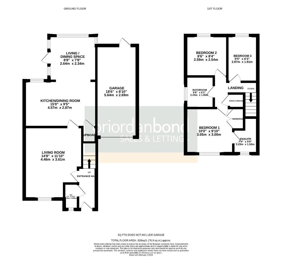 The accommodation comprises entrance hall with stairs to first floor, cloakroom/WC, living room, a modern fitted kitchen with built-in appliances and open to an additional living/dining space. On the first floor are three bedrooms, the master having ensuite shower room and built-in wardrobes, and a family bathroom suite.