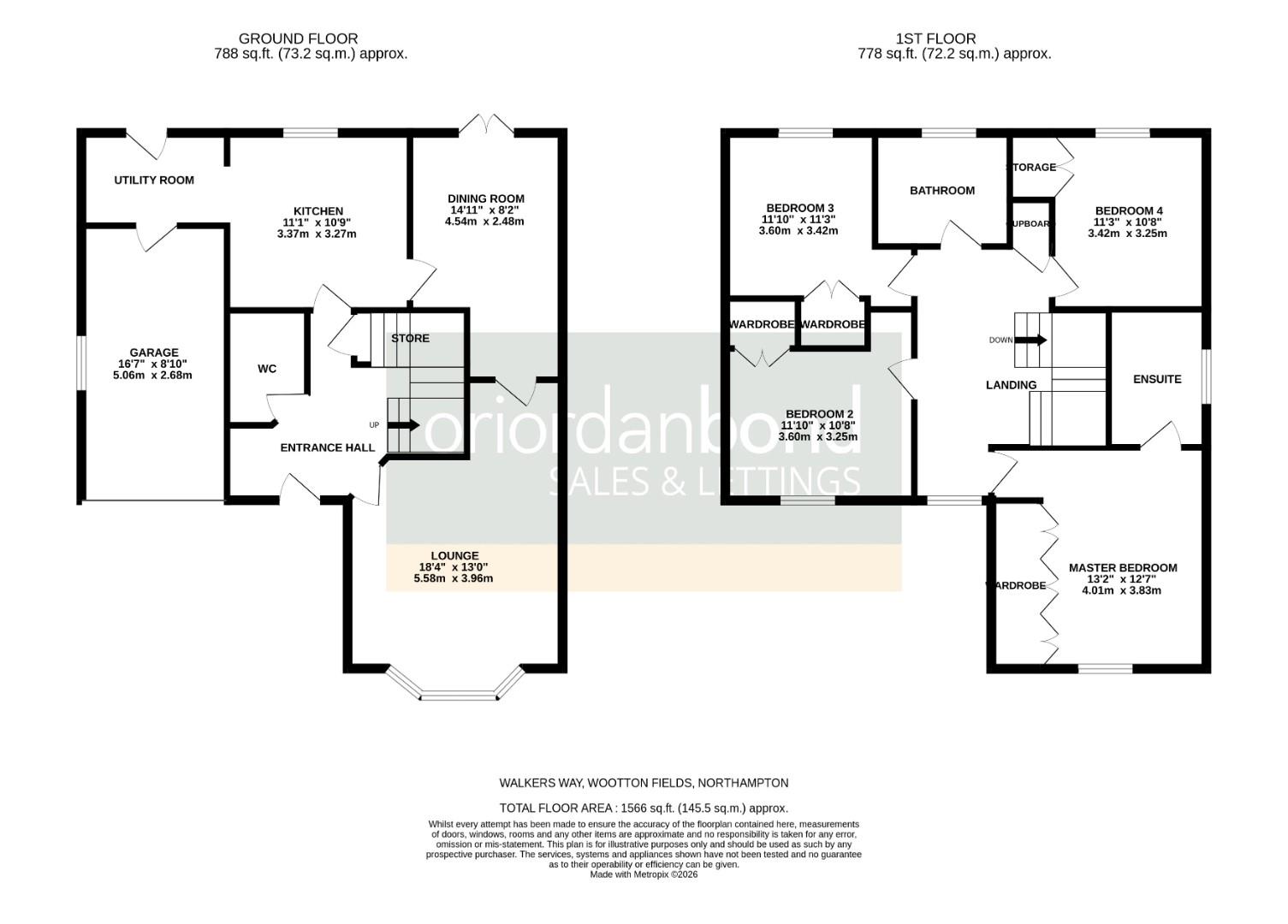This four double bedroom detached family home is offered for sale in the ever popular area of Wootton Fields, built by Messrs David Wilson to their popular 'Elmbridge design.' The property has been well maintained throughout and is in the school catchment for Wootton Primary as well as the highly rated Caroline Chisholm. The accommodation comprises entrance hall, cloakroom/WC, sitting room, dining room, kitchen and utility room on the ground floor. To the first floor are four double bedrooms all with built-in wardrobes and an ensuite to the master bedroom along with a separate family shower room. Outside are front and rear gardens and a driveway providing off road parking for two cars leading to an integral garage with electric door. Further benefits include uPVC double glazing and gas radiator heating. (B/1566/M)