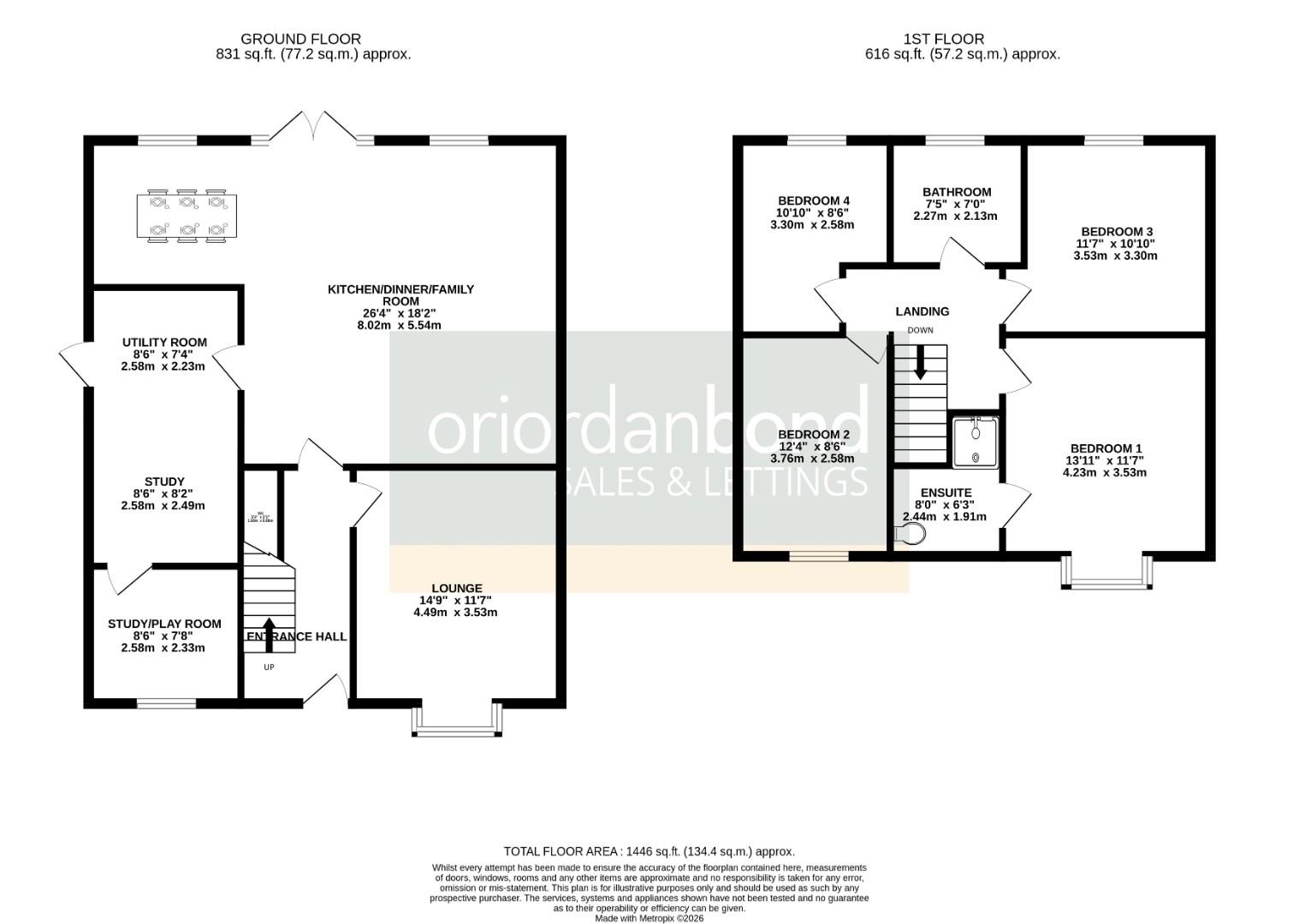 An immaculately presented and extended four bedroom detached home in the fantastic residential location of Simpson Manor which benefits from outstanding schools and great local amenities. The well proportioned accommodation comprises entrance hall, refitted cloakroom, sitting room, extended kitchen/dining/family room, a converted garage providing space for two separate study spaces which could be converted to downstairs living, utility room, landing, four bedrooms, en-suite and family bathroom which have been replaced. Externally there are well maintained front gardens with off roading parking and a private rear garden which is facing South East. Further benefits include gas radiator heating, uPVC double glazing, new carpets laid and modern downlights across the property. (A/1446/M)