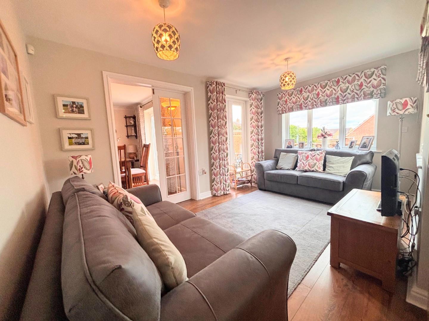 This immaculately presented and extended four double bedroom detached family home is offered for sale in the popular location of Wootton Fields within close proximity to sought after Caroline Chisholm School. The well proportioned and spacious accommodation comprises entrance hall, bay fronted sitting room, dining room with French doors to the rear garden, extended and refitted kitchen/breakfast/family room with integrated cooking appliances island unit, skylight windows providing natural light and dual aspect French doors to the rear garden, a utility room and cloakroom/WC on the ground floor. To the first floor are four double bedrooms and a family bathroom with ensuite and dressing area to the master bedroom. Outside is a well maintained front garden with double width block paved driveway leading to an integral double garage. To the rear is an enclosed landscaped garden laid mainly to lawn with patio seating areas and an outside cabin with power and light connected. Further benefits include uPVC double glazing and gas radiator heating. (A/1782/M)